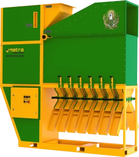 Metra separates grain from light to heavy impurities, infected and damaged grain. As well as calibrating grain based on its relative density.