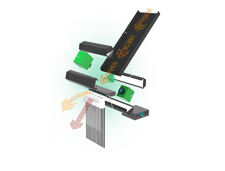 Has 136 ejectors & camera to identify material diameter as small as 0.04mm.